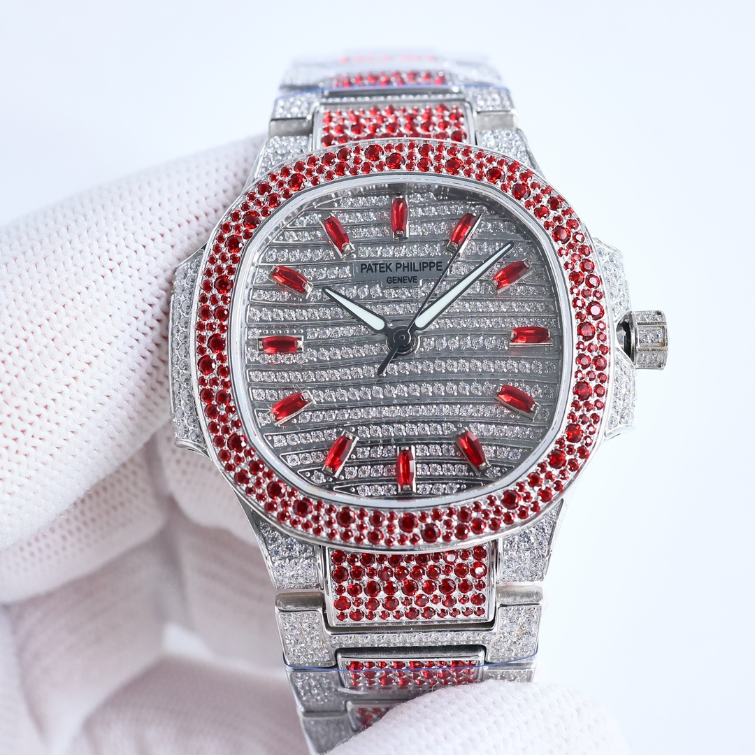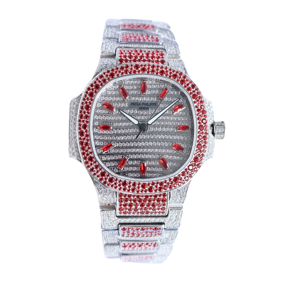 Patek Philippe Nautilus 35.2mm Red Gen Full Diamond Dial Platinum Bezel 7118/1452G-001 Woman Ladies