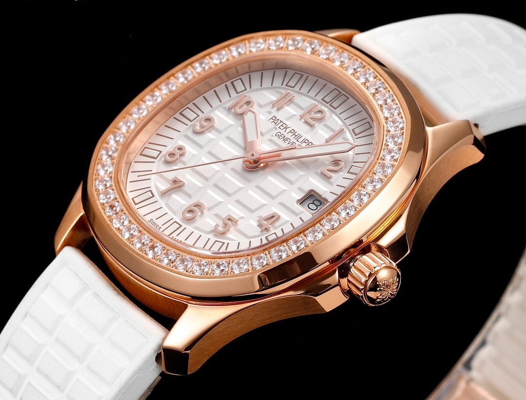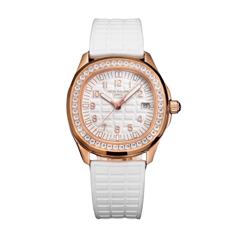 Patek Philippe Aquanaut 35.6mm White Dial Rose Gold Diamond Bezel White Rubber Strap 5068R-010 Woman Ladies