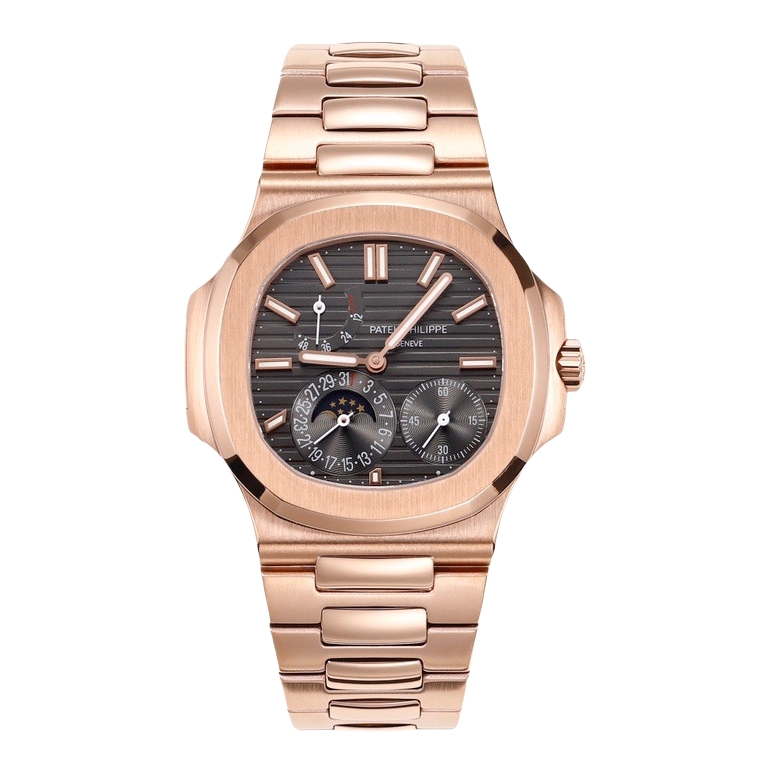 Patek Philippe Nautilus 40mm Black Dial Rose Gold Bezel 5712/1R-001 Complications