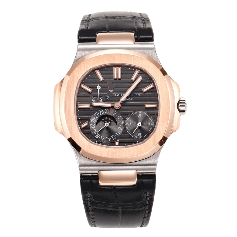 Patek Philippe Nautilus 40mm Black Grey Dial Gen Everose Gold Bezel Strap 7122