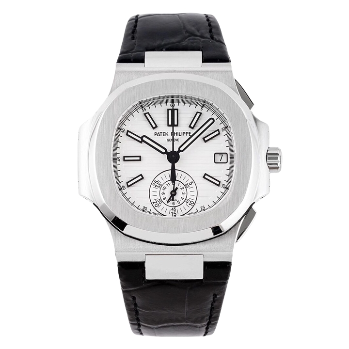 Patek Philippe Nautilus 40.5mm White Dial Steel Bezel Black Leather Complications 5980