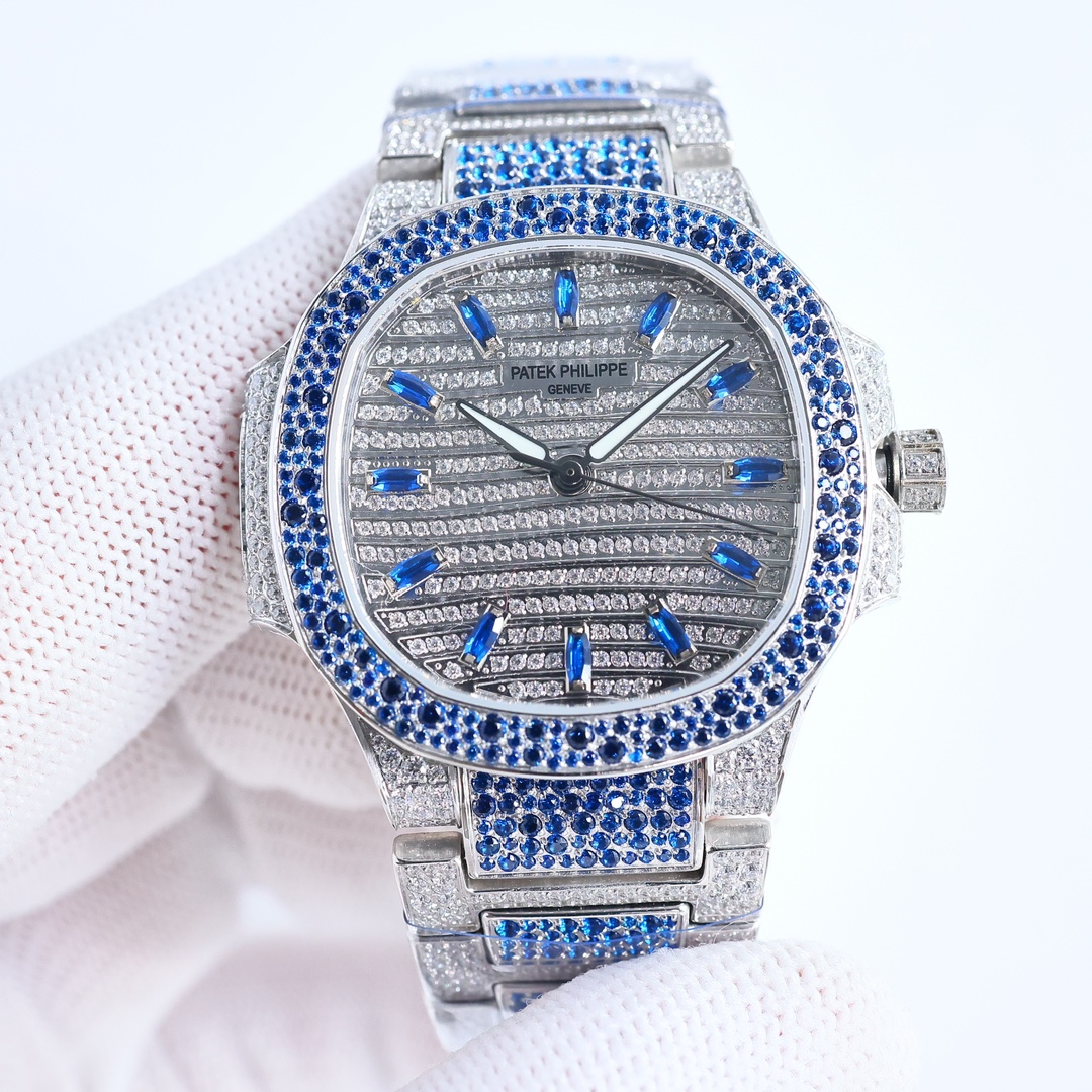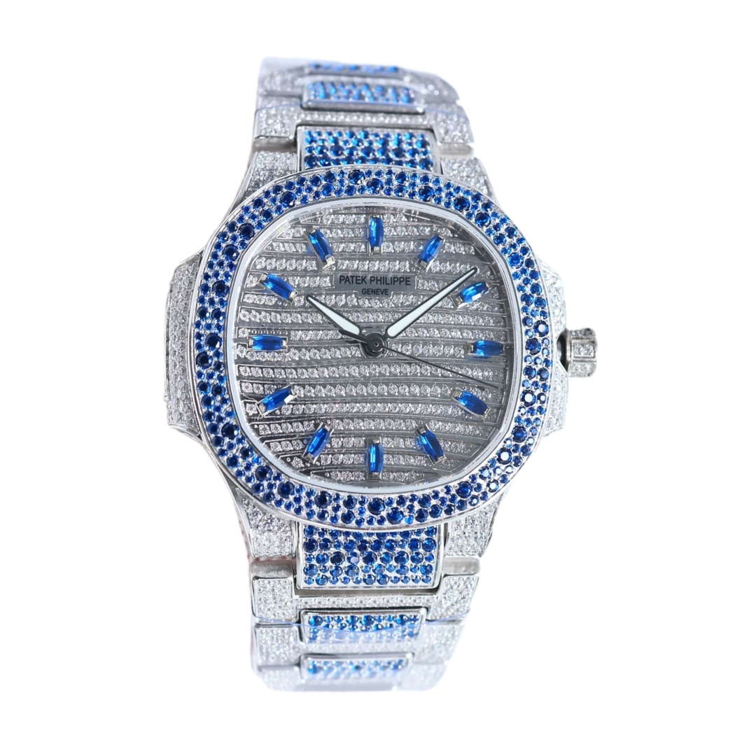 Patek Philippe Nautilus 35.2mm Blue Gen Full Diamond Dial Platinum Bezel 7118/14521G-001 Woman Ladies