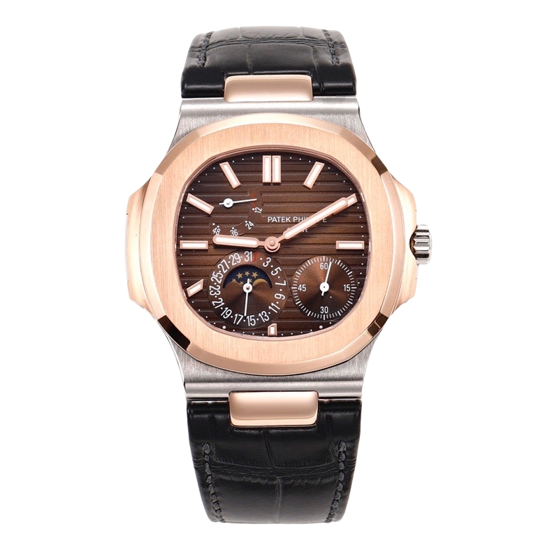Patek Philippe Nautilus 40mm Chocolate Moon Phase Dial Rose Gold Bezel Black Leather 5712GR-001