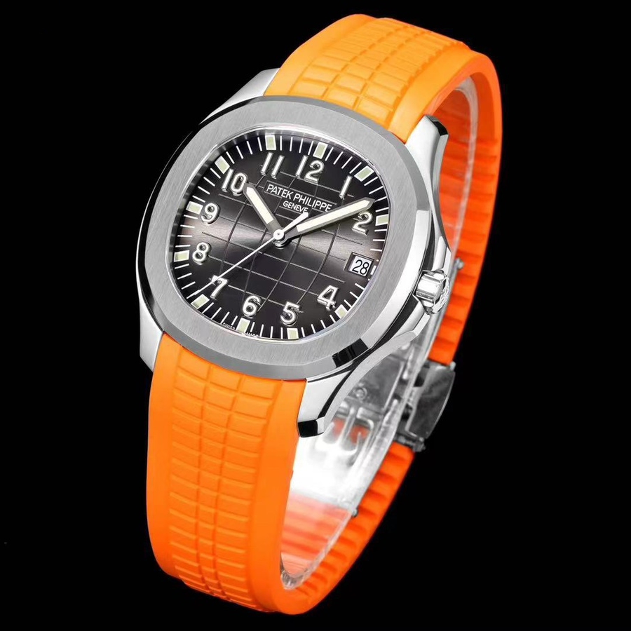Patek Philippe Aquanaut 40mm Black Dial Steel Bezel Orange Rubber Strap 5167A