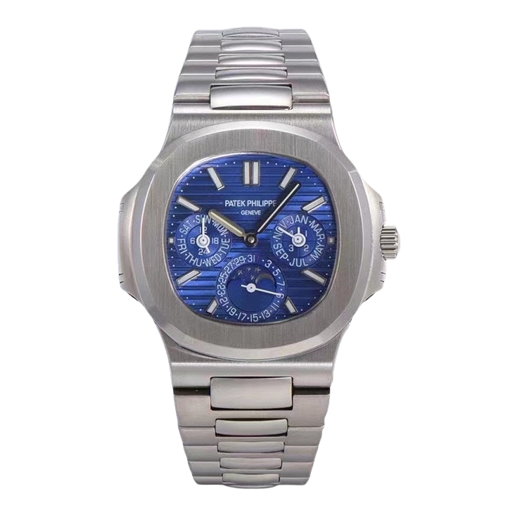 Patek Philippe Nautilus 40mm Blue Moon Phase Dial Platinum Bezel Complications 5740/1G-001