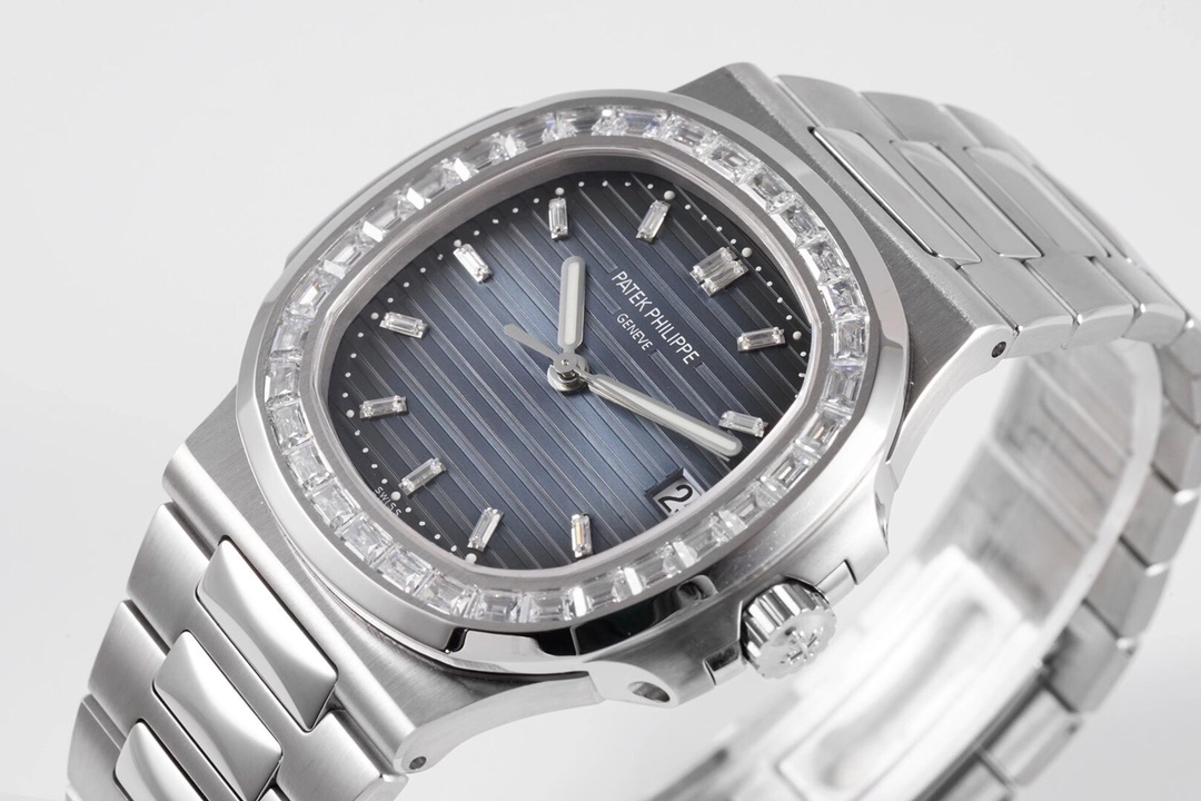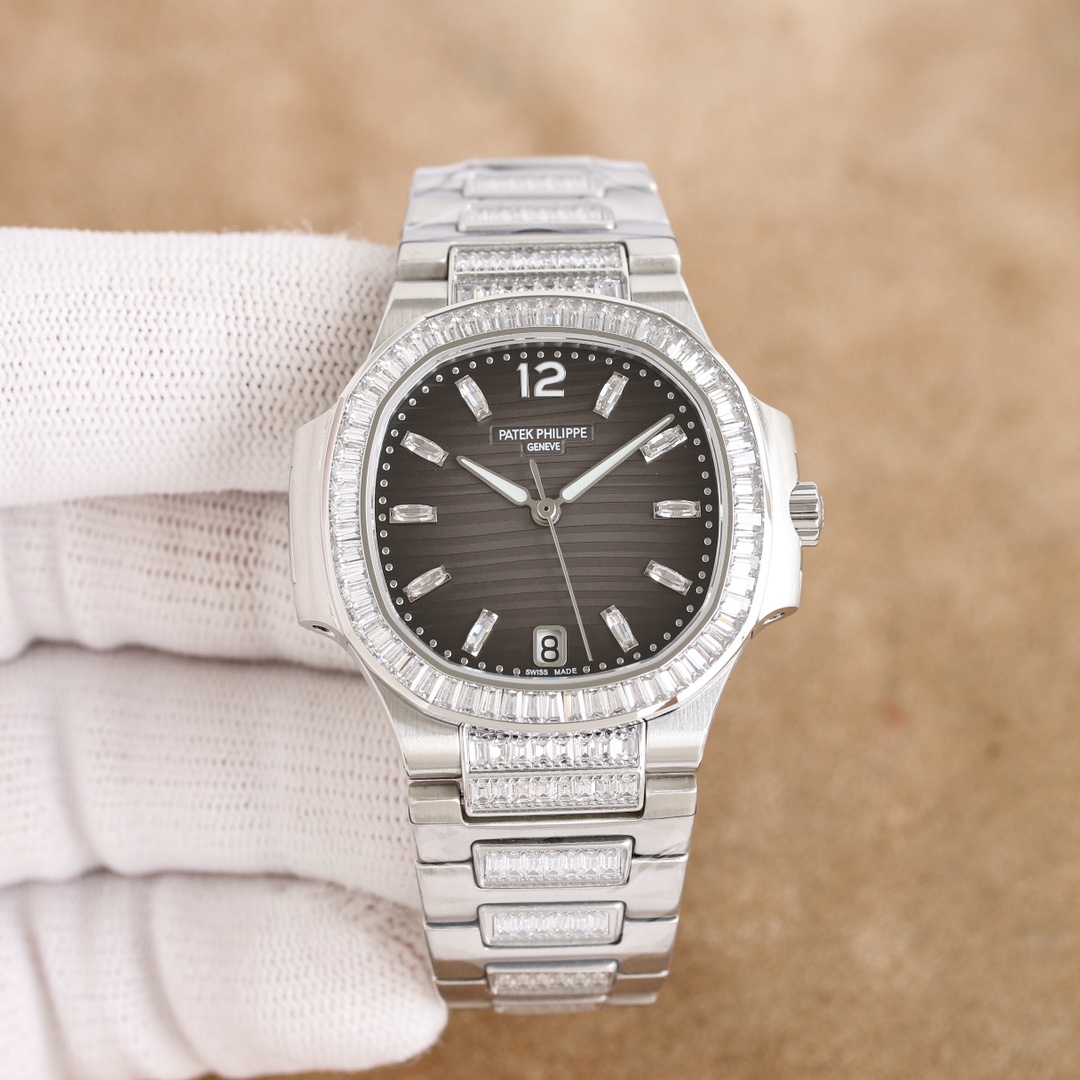 Patek Philippe Nautilus 35.2mm Black Grey Dial Gen Bezel Platinum Strap 7014/1G Woman Ladies