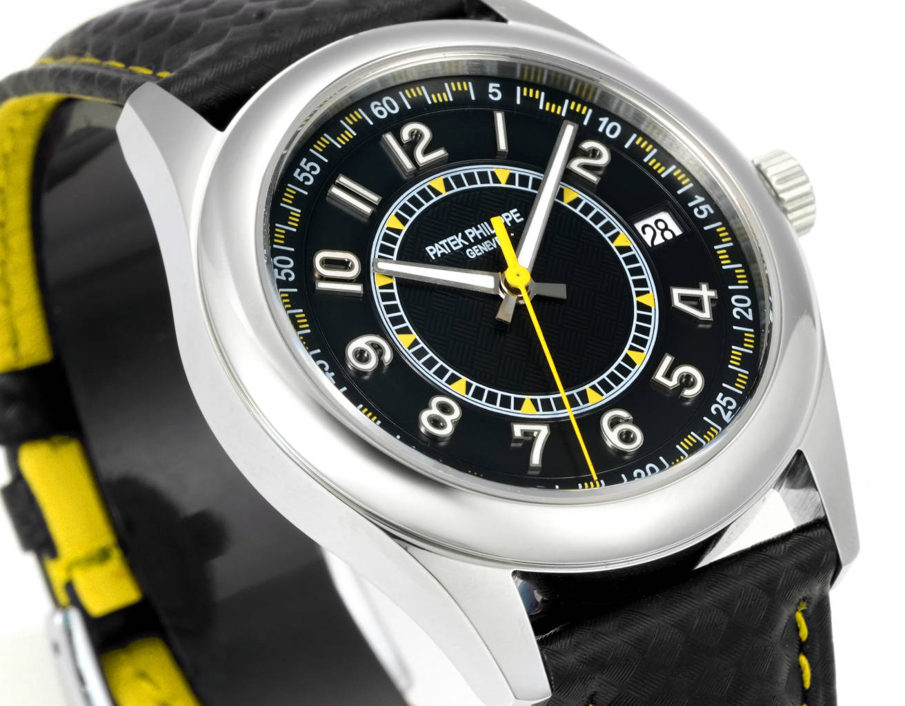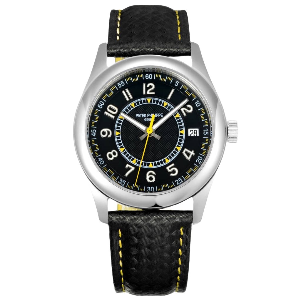 Patek Philippe Calatrava 40mm Black Yellow Dial Steel Bezel Black Leather Strap 6007G-001