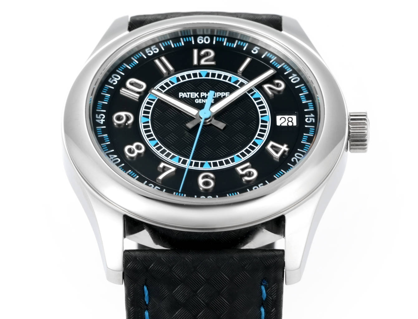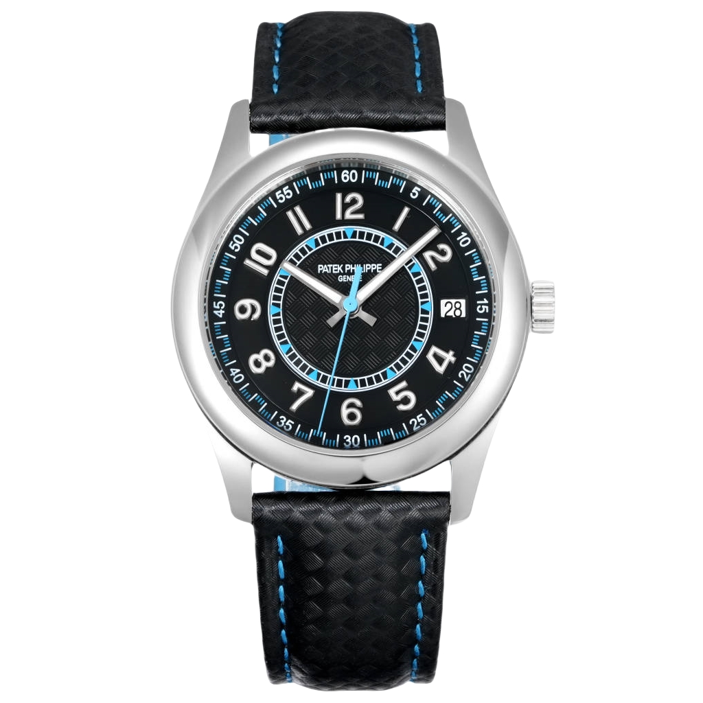 Patek Philippe Calatrava 40mm Black Blue Dial Steel Bezel Black Leather Strap 6007G-011
