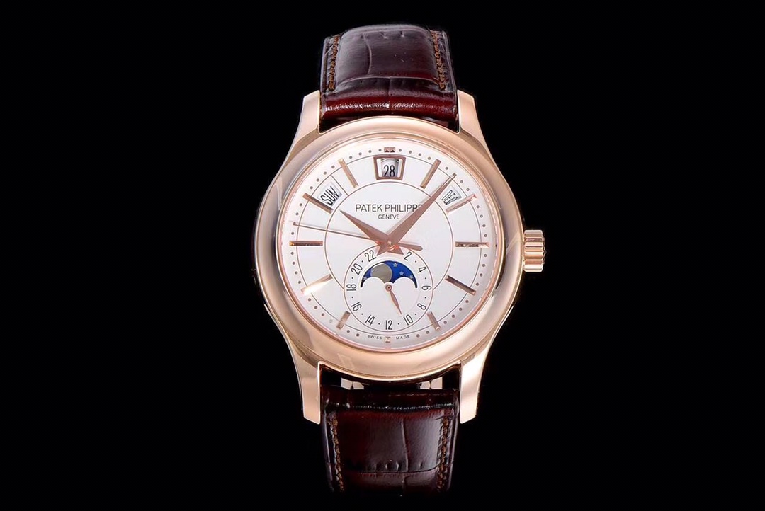 Patek Philippe Grand Complications 38mm White Dial Rose Gold Carving Bezel Brown Leather Strap 5160/500R-001