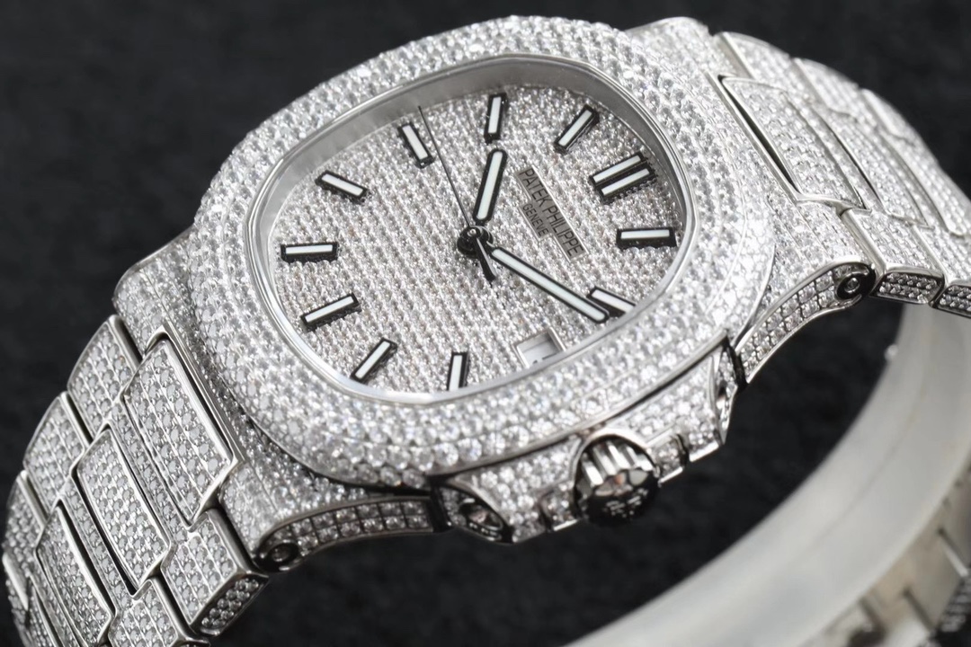 Patek Philippe Nautilus 40mm Diamond Dial Platinum Diamond Bezel Diamond Strap 5711FD