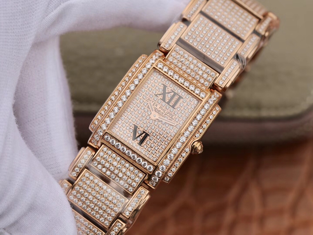 Patek Philippe Twenty 4 22x26.3mm Diamond Dial Rose Gold Diamond Bezel 4908/50R-012 Woman Ladies