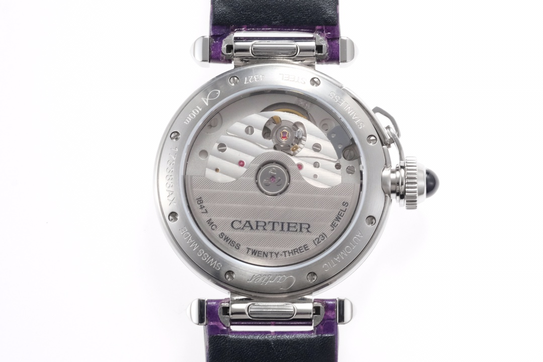 | Cartier Pasha 35mm White Dial Steel Bezel Purple Leather Strap WGPA0014 Ladies | |