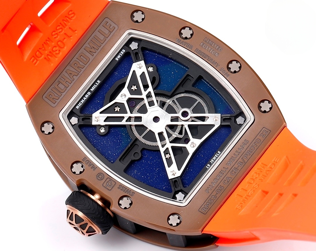 Richard Mille RM52-05 49.94mm x 42.35mm Astronaut Dial Brass Titanium Bezel Orange Rubber Strap Pharrell Williams