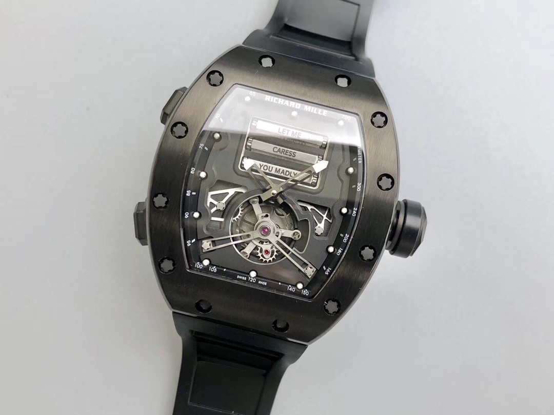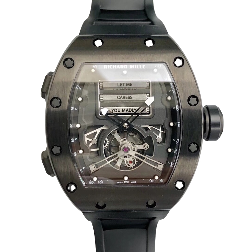 Richard Mille RM69 50mm × 42.7mm Erotic Tourbillon Dial Black Ceramics Bezel Black Rubber Strap