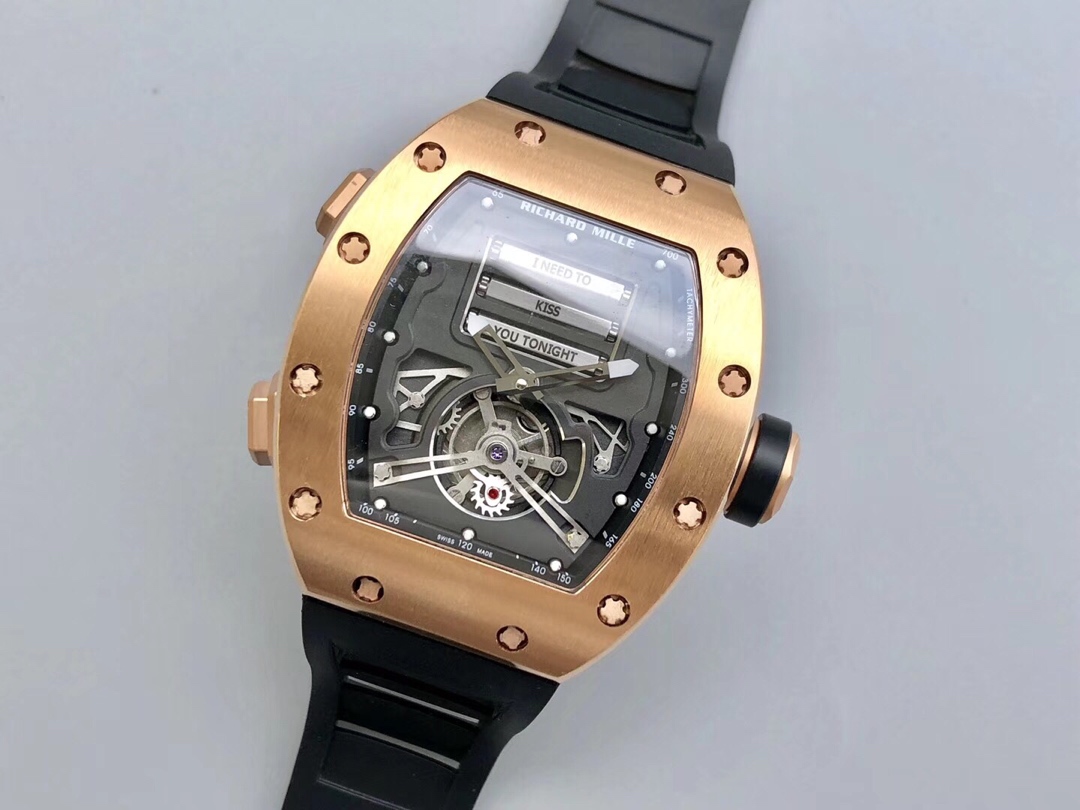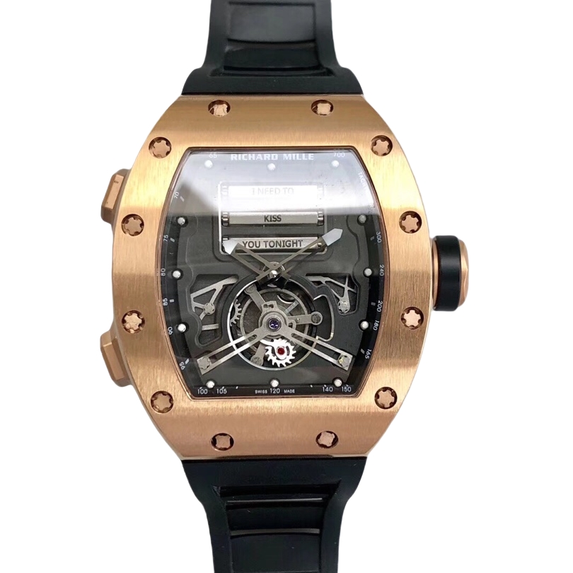 Richard Mille RM69 50mm × 42.7mm Erotic Tourbillon Dial Rose Gold Bezel Black Rubber Strap