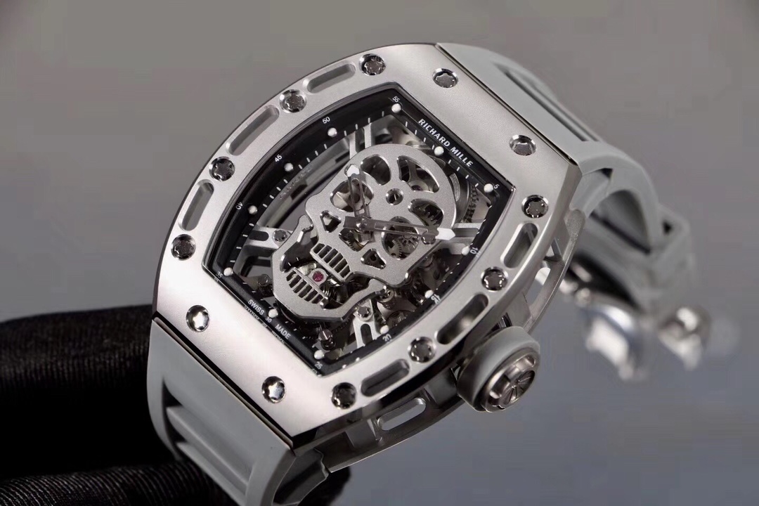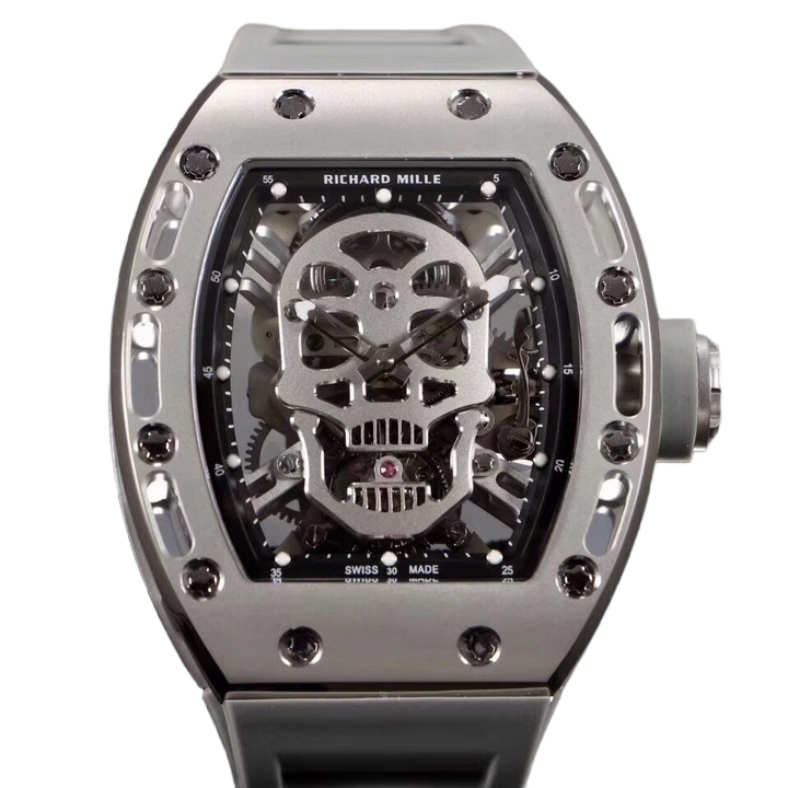Richard Mille RM52-01 50mm × 42.7mm Skull Dial Titanium Steel Bezel Grey Rubber Strap