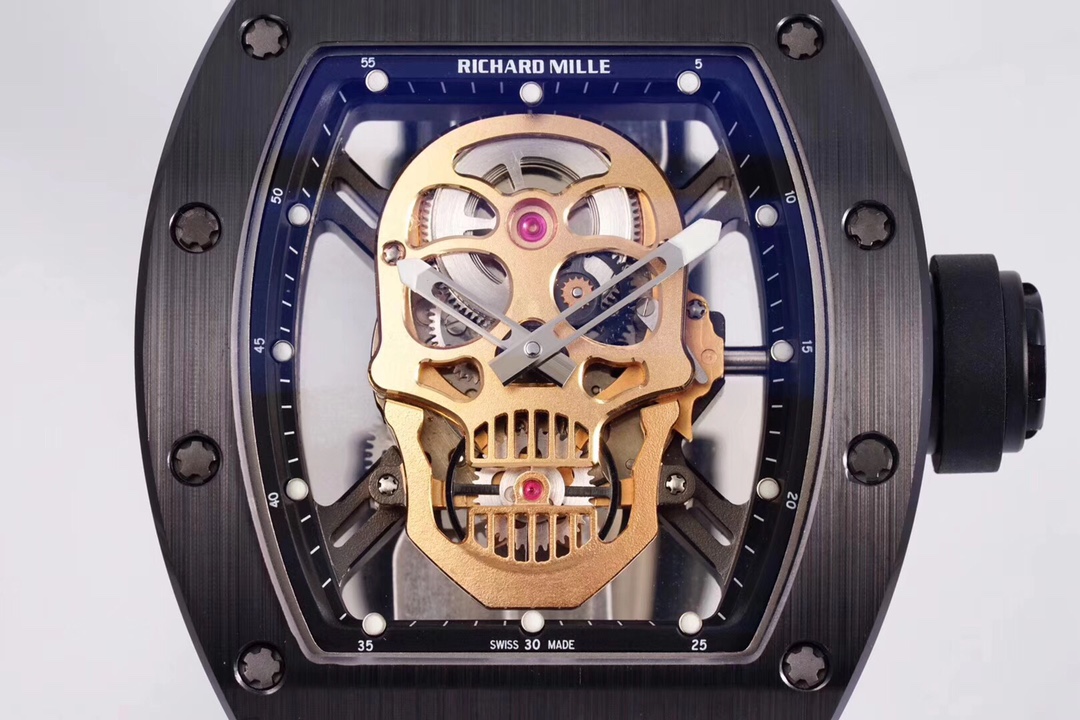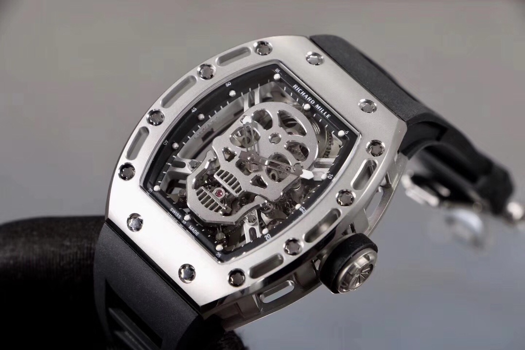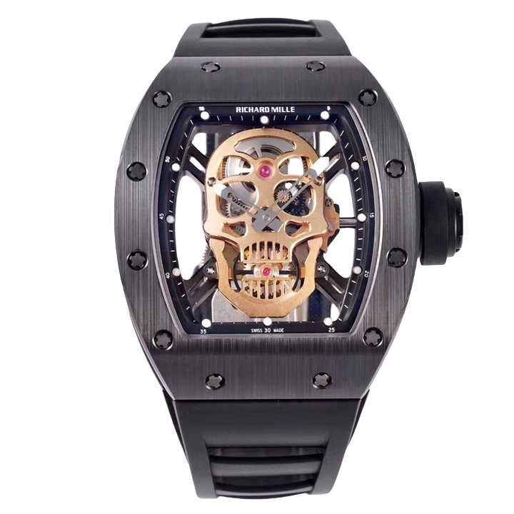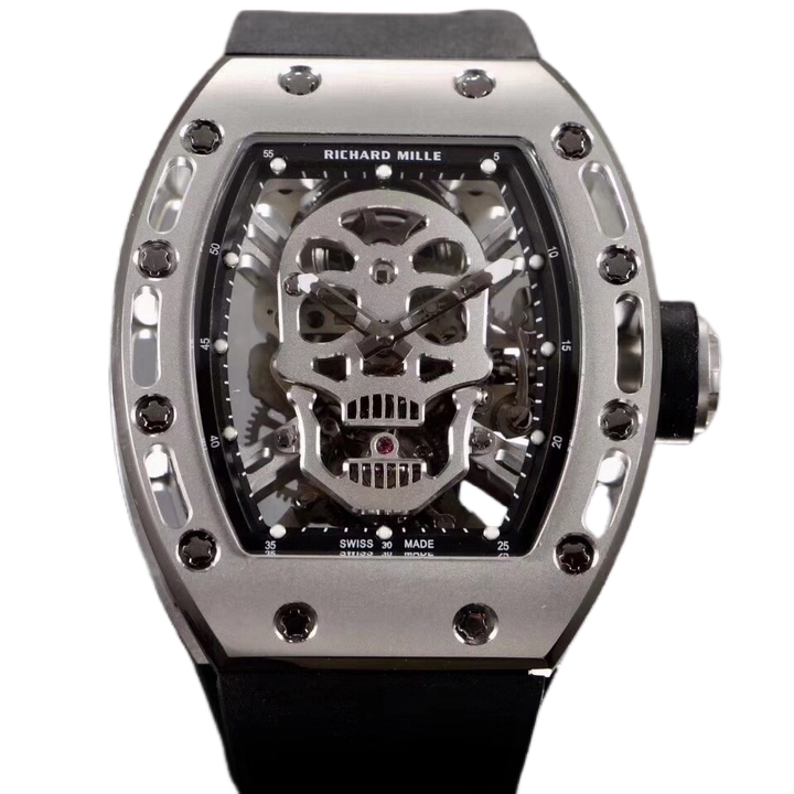 Richard Mille RM52-01 50mm × 42.7mm Skull Dial Titanium Steel Bezel Black Rubber Strap