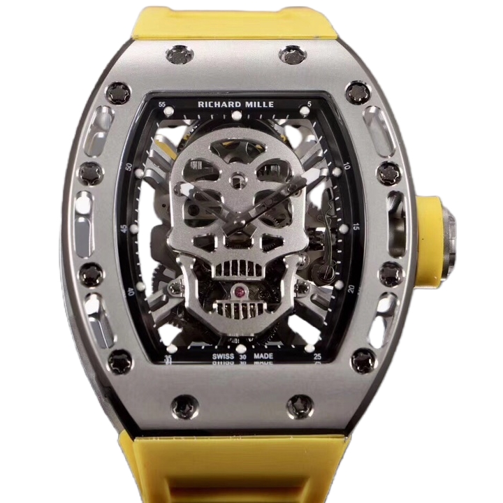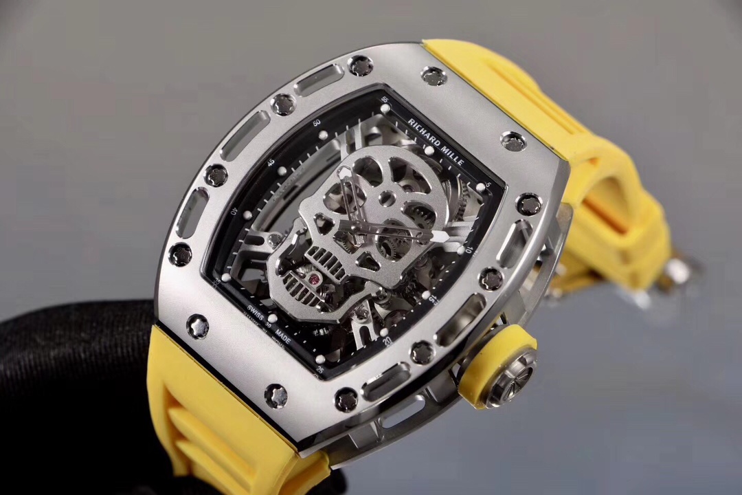 Richard Mille RM52-01 50mm × 42.7mm Skull Dial Titanium Steel Bezel Yellow Rubber Strap