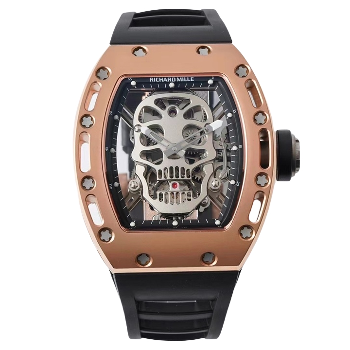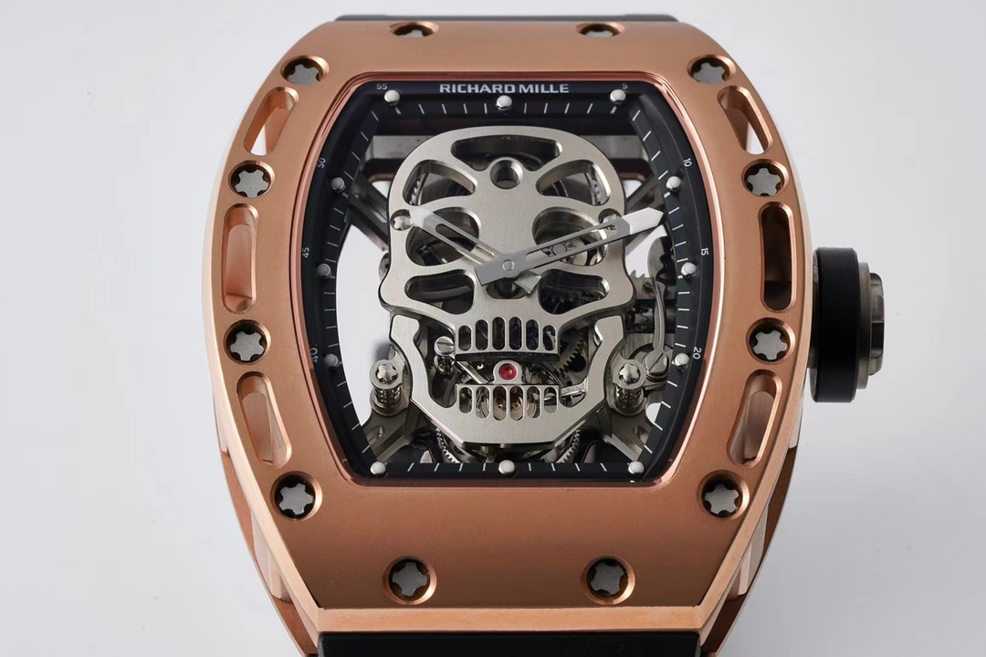 Richard Mille RM52-01 50mm × 42.7mm Skull Dial Rose Gold Bezel Black Rubber Strap