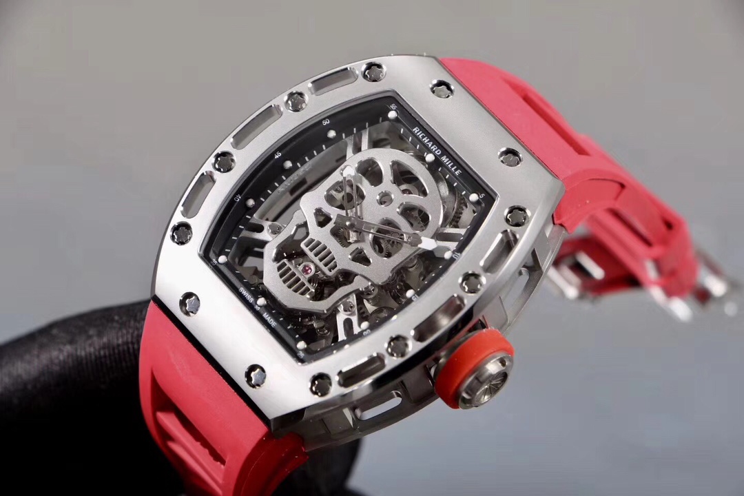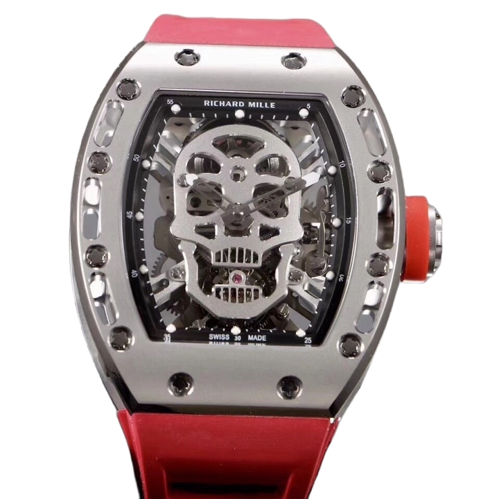 Richard Mille RM52-01 50mm × 42.7mm Skull Dial Titanium Steel Bezel Red Rubber Strap