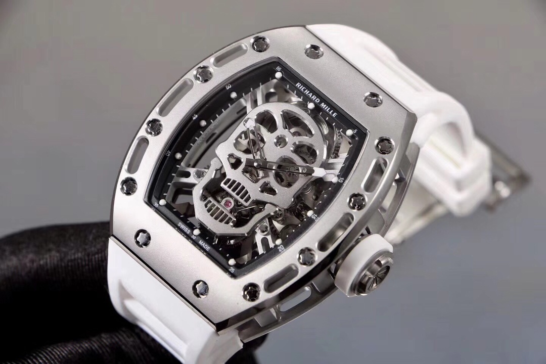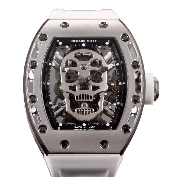 Richard Mille RM52-01 50mm × 42.7mm Skull Dial Titanium Steel Bezel White Rubber Strap