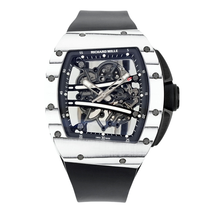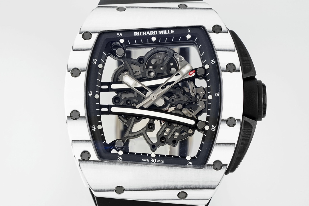 Richard Mille RM61-01 50.23mm x 42.70mm Gray Hollow Dial White Carbon Fiber Bezel Black Rubber Strap