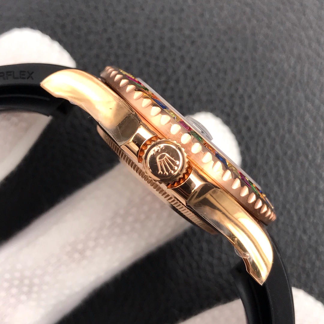 | Rolex Yacht-Master 40mm Black Dial Rose Gold Candy Gen Bezel Rubber 116695SATS | |