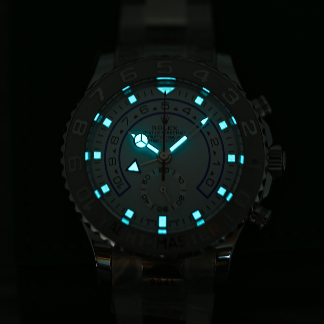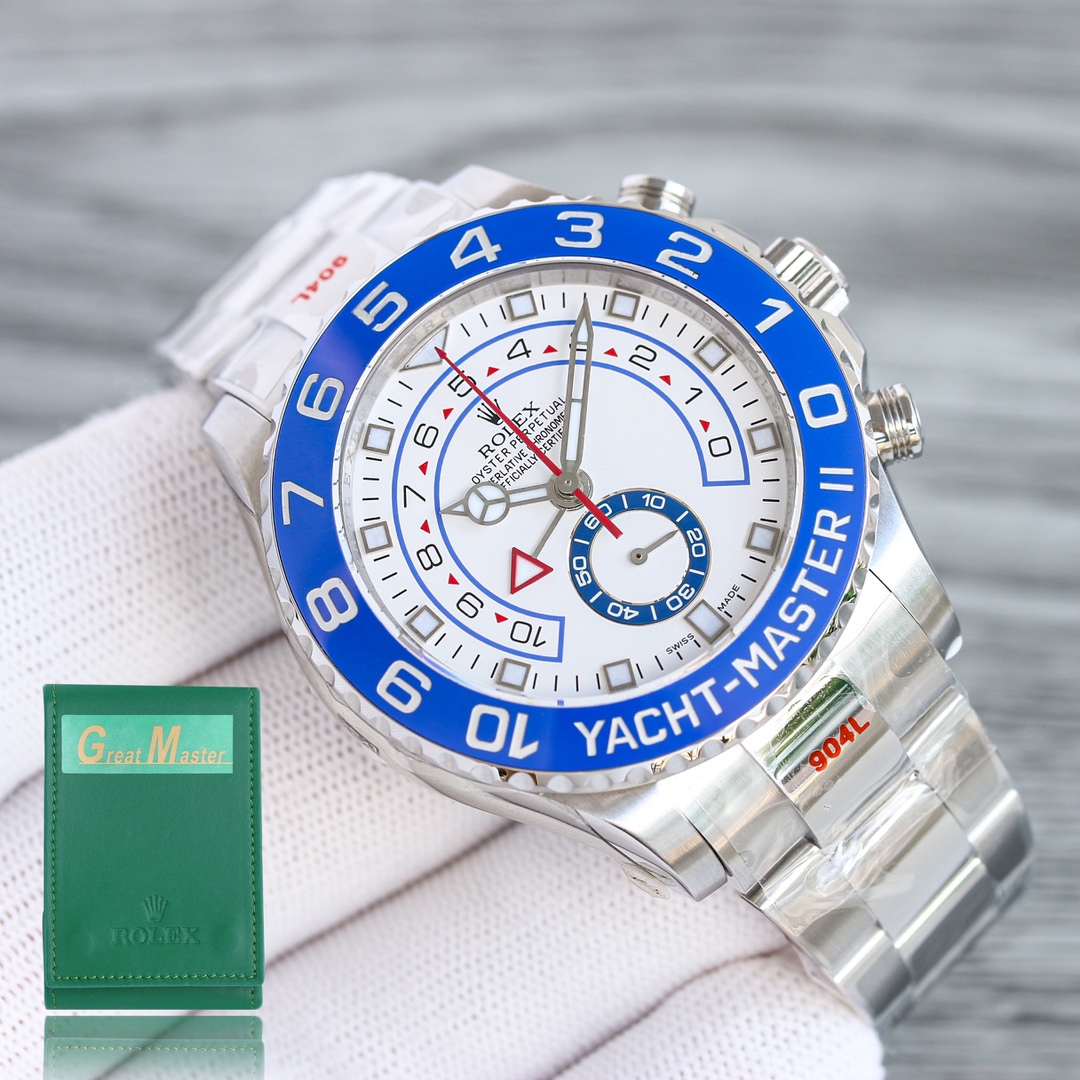 Rolex Yacht-Master II 44mm White Dial Platinum Blue Bezel Steel 116680-0002 Benz