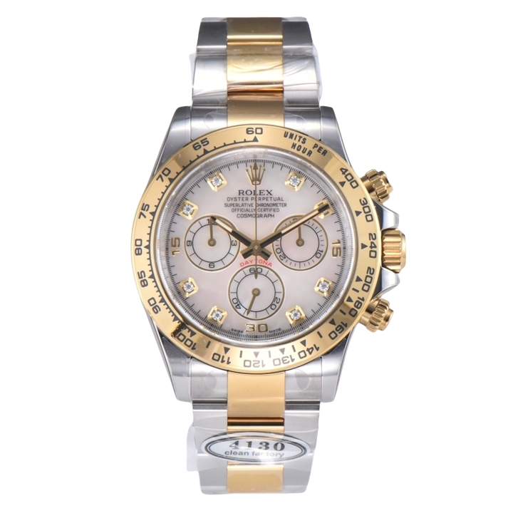 Rolex Daytona Cosmograph 40mm Cloud Fritillary Diamond Dial Yellow Gold Steel Bezel Strap 116503-0007