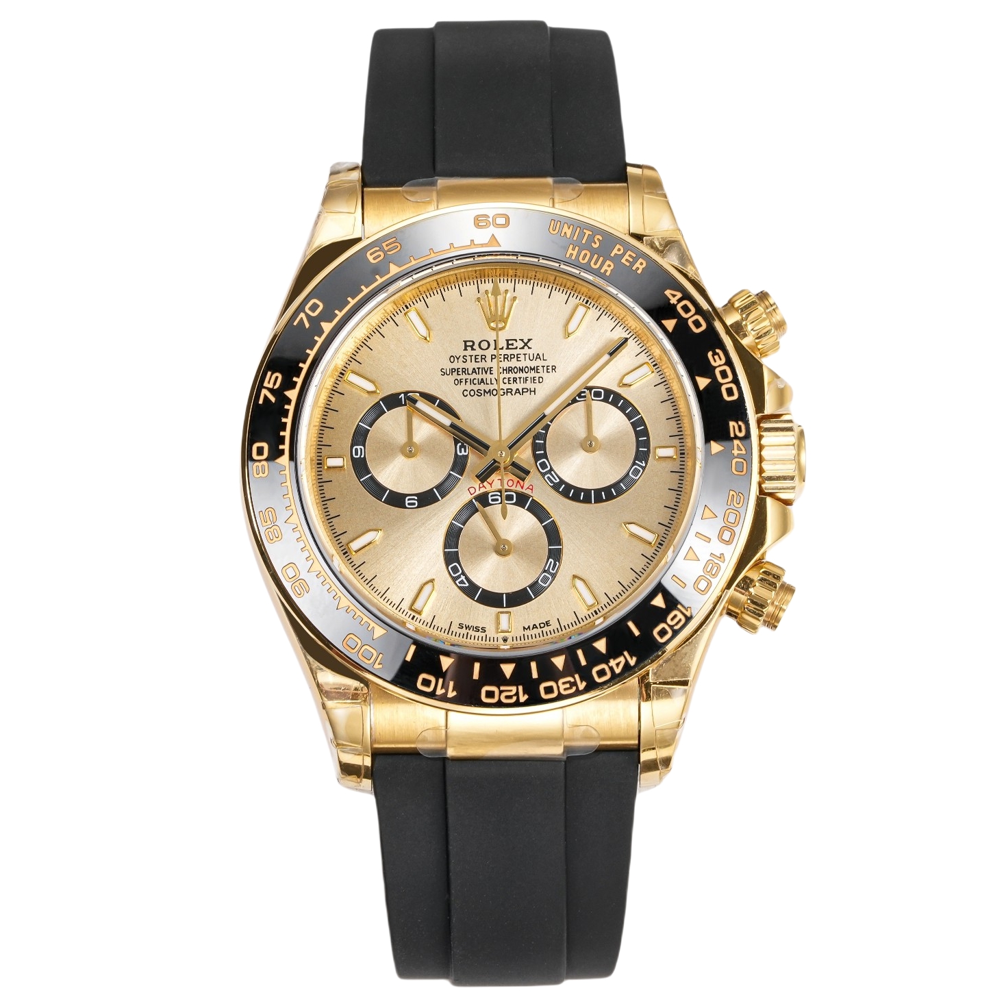 Rolex Daytona Cosmograph 40mm Yellow Gold Black Dial Black Bezel Black Rubber Strap 126518LN-0010