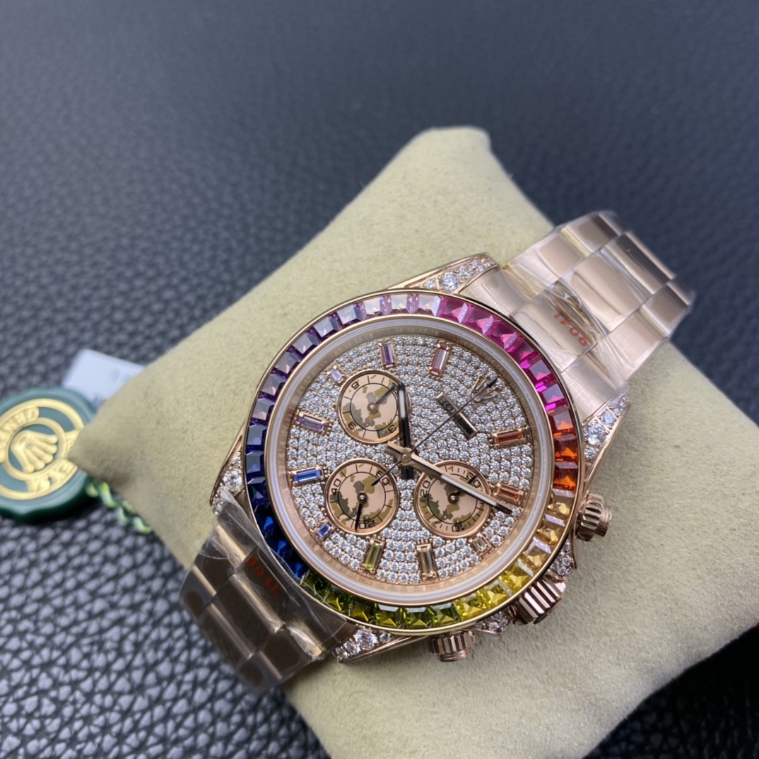 Rolex Daytona Rainbow 40mm Diamond Dial Rose Gold Diamond Bezel Strap 116595RBOW-0002