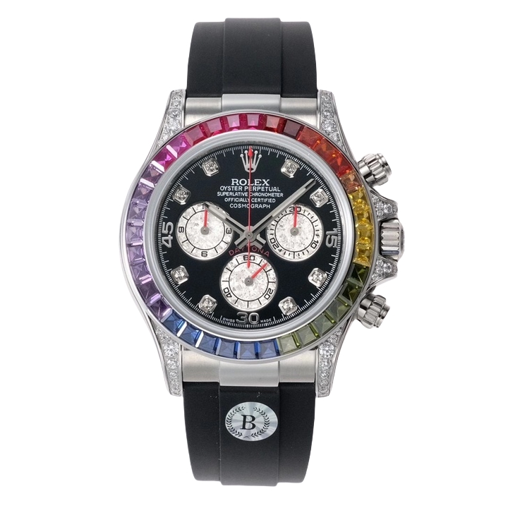 Rolex Daytona Rainbow 40mm Black Dial Platinum Diamond Bezel Black Rubber Strap 116599RBOW