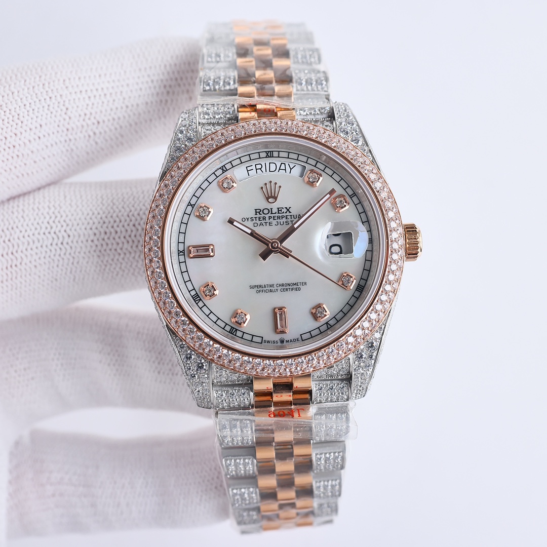 Rolex Day-Date 40mm Dial White Full Diamond Platinum Luxury Woman Ladies