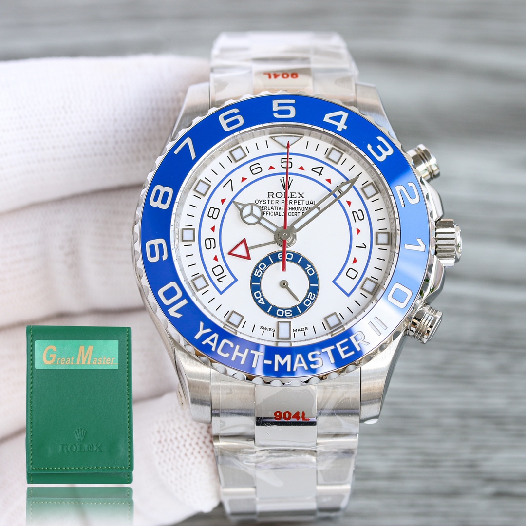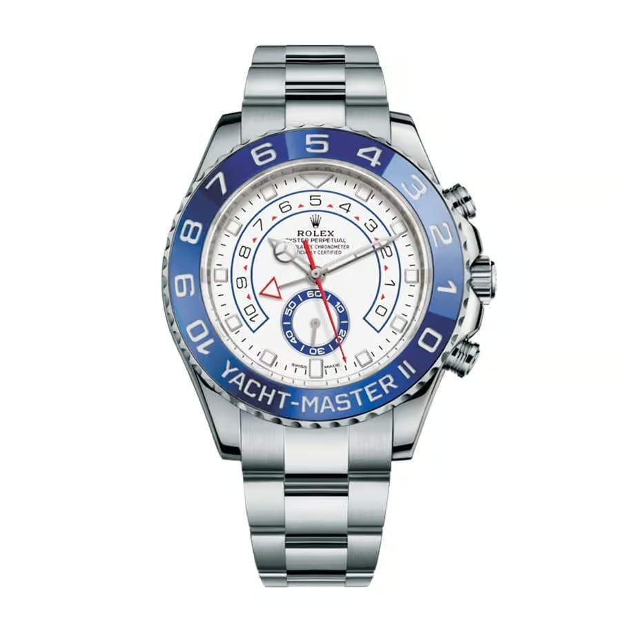 Rolex Yacht-Master II 44mm White Dial Platinum Blue Bezel Steel 116680-0002 Benz