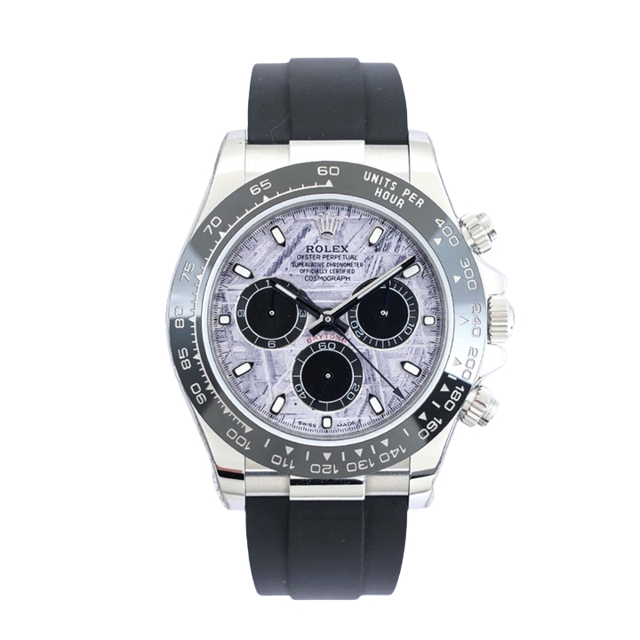 Rolex Daytona Cosmograph 40mm Meteorites Dail Black Platinum Bezel Black Rubber Strap 116519LN-0038