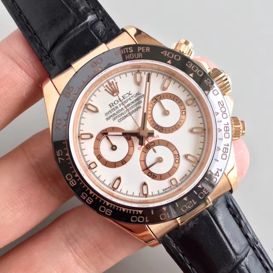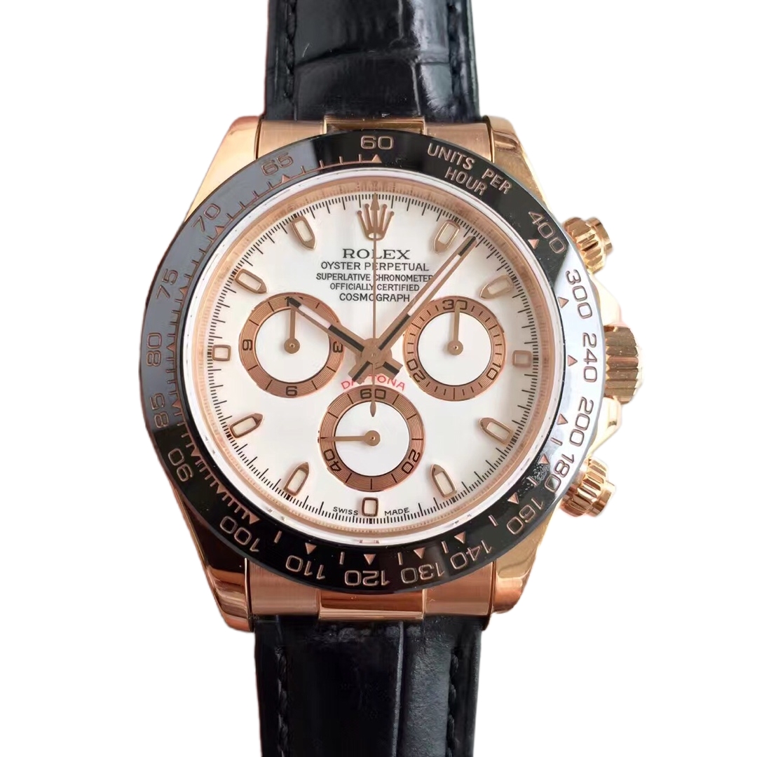 Rolex Daytona 40mm Dial Ivory White Rose Gold Black Leather 116515LN-0003