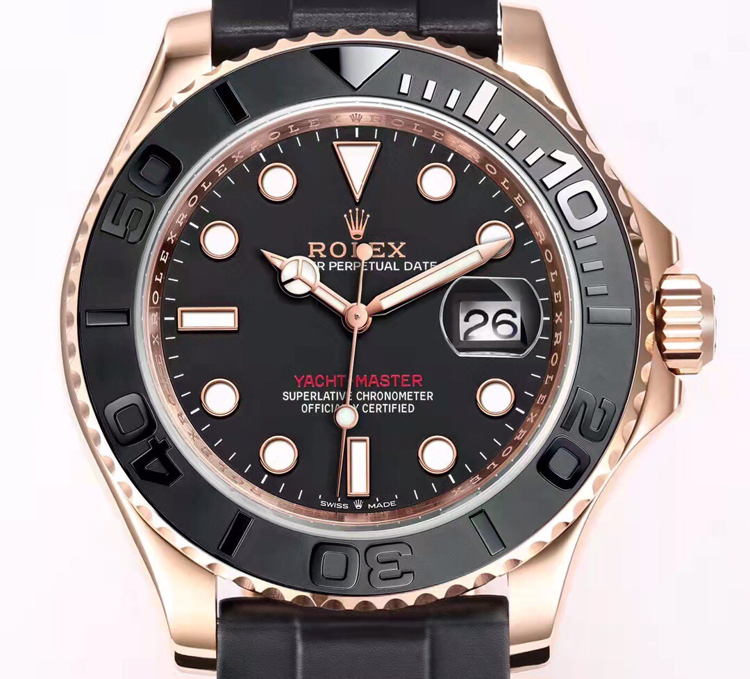 Rolex Yacht-Master 40mm Black Dial Rose Gold Black Bezel 126655-0002 Benz