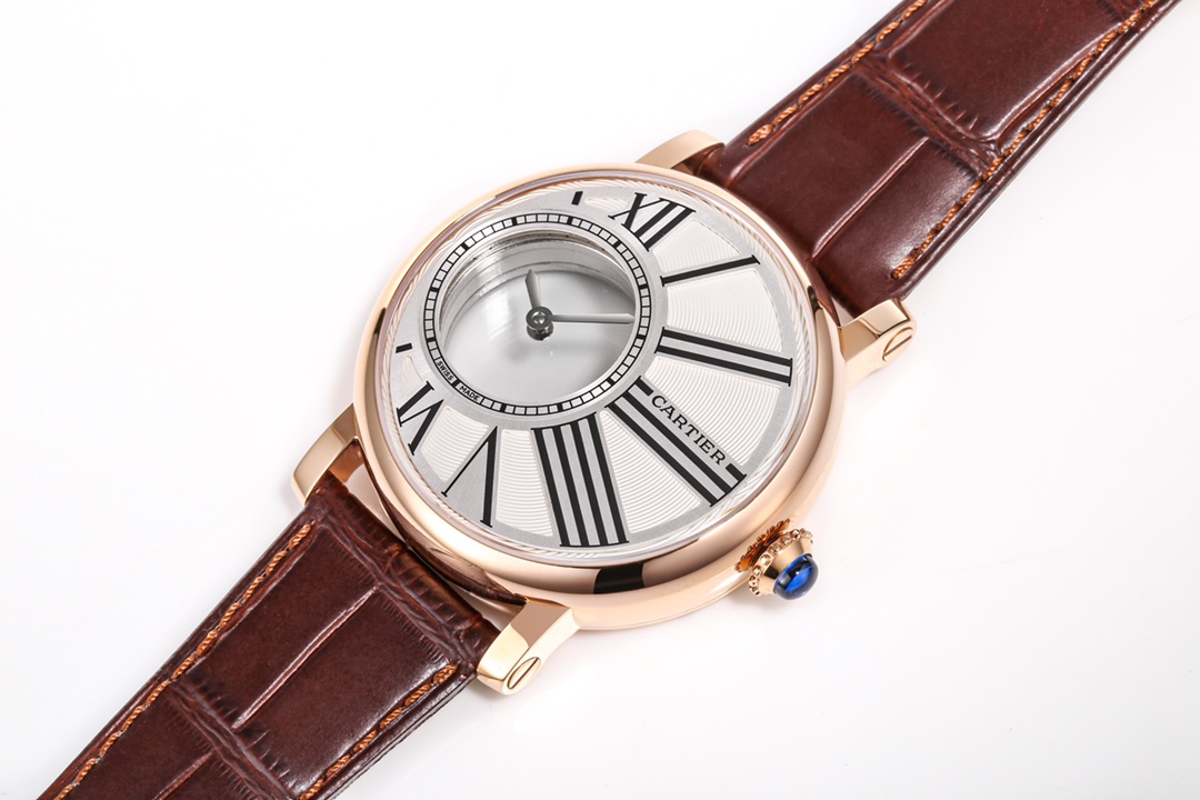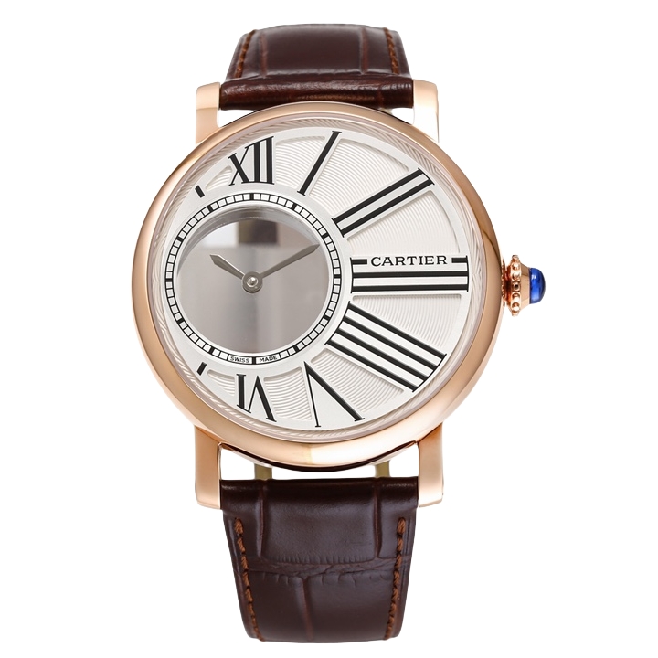 Cartier Rotonde 42mm Hollow Dial Rose Gold Bezel Brown Leather Strap W1556223