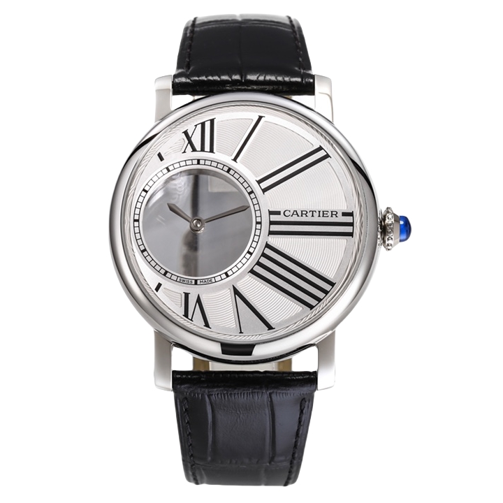 Cartier Rotonde 42mm Hollow Dial Steel Bezel Black Leather Strap W1556224