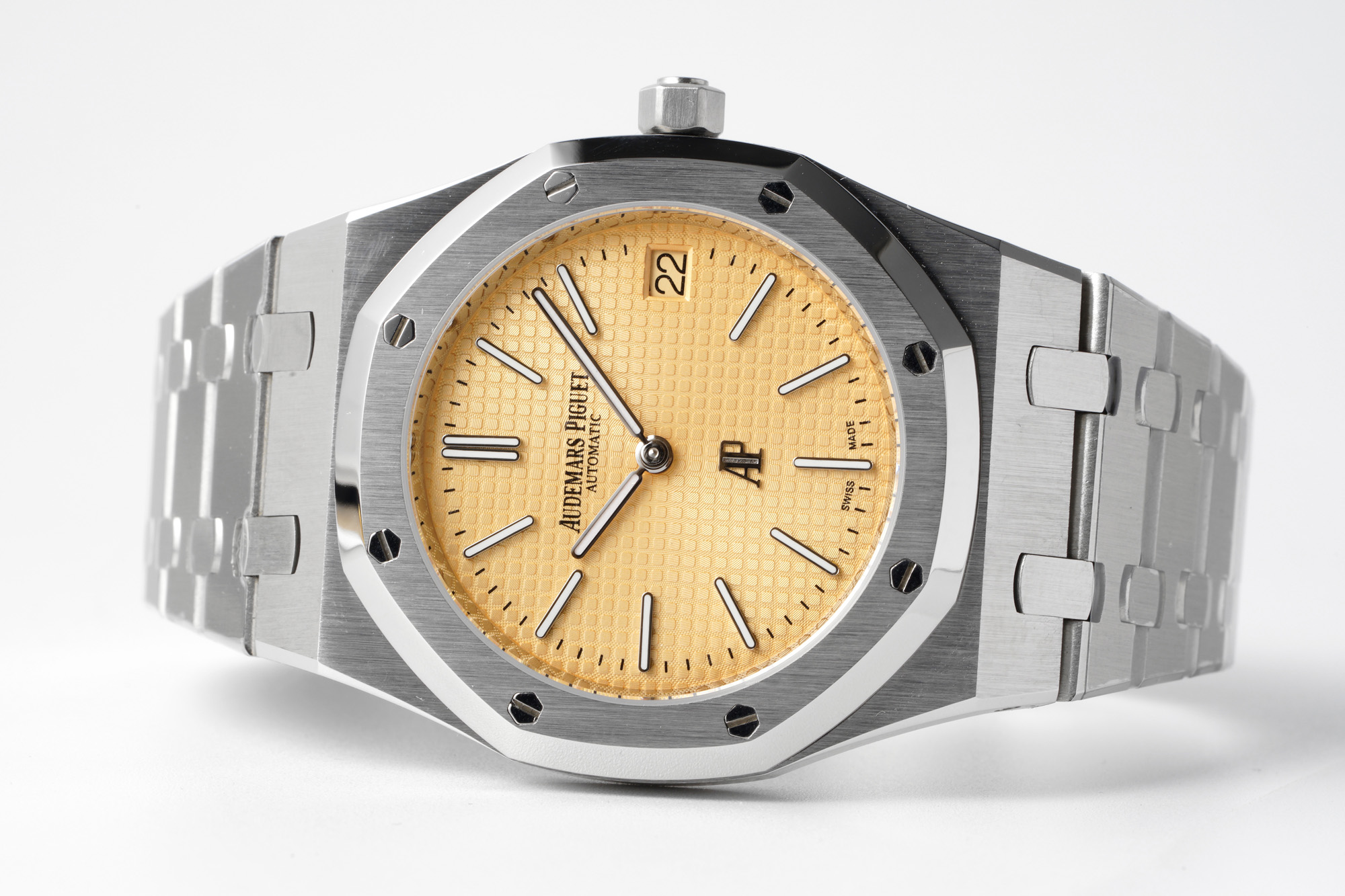 | Audemars Piguet Royal Oak 39mm Yellow Dial Steel Bezel 15202BC.OO.1240BC.01 | |