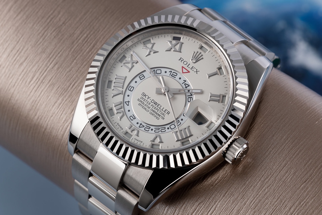 Rolex Sky-Dweller 42mm Ivory Dial Platinum Bezel Roman Number 326939-72419