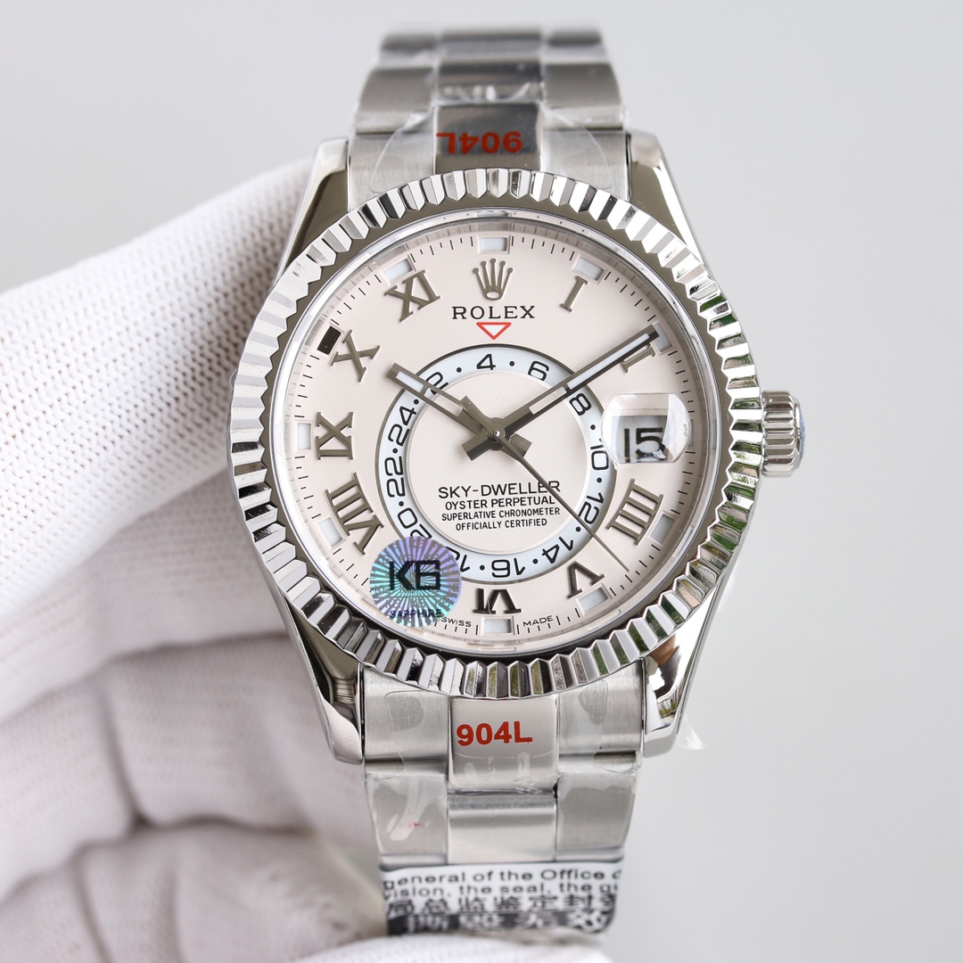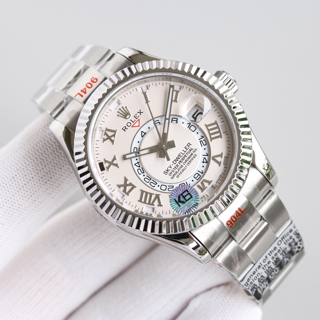 Rolex Sky-Dweller 42mm Ivory Dial Platinum Bezel Roman Number 326939-72419