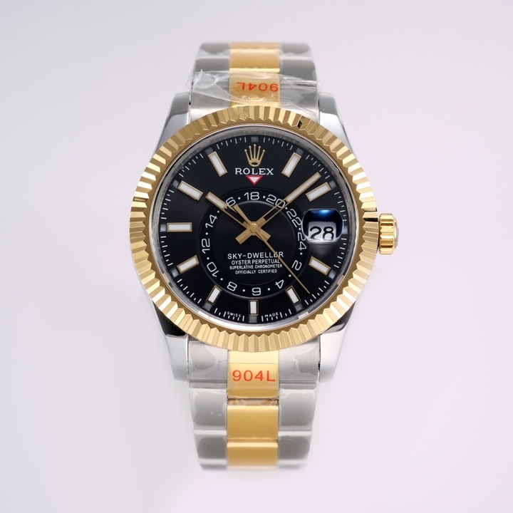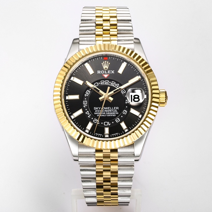 Rolex Sky-Dweller 42mm Black Dial Yellow Bezel Gold & Steel 336933-0003