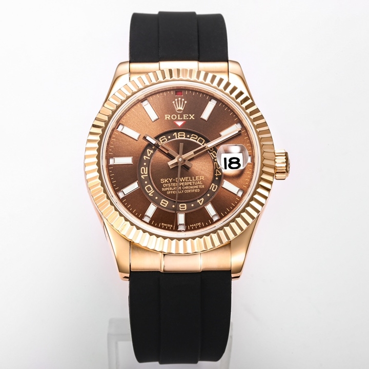 Rolex Sky-Dweller 42mm Chocolate Dial Rose Gold Bezel Black Strap 326235-0005