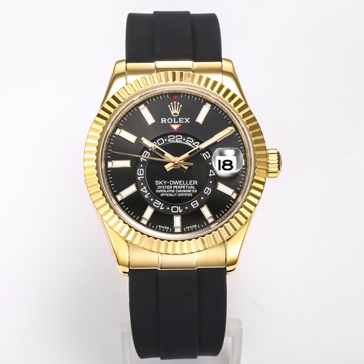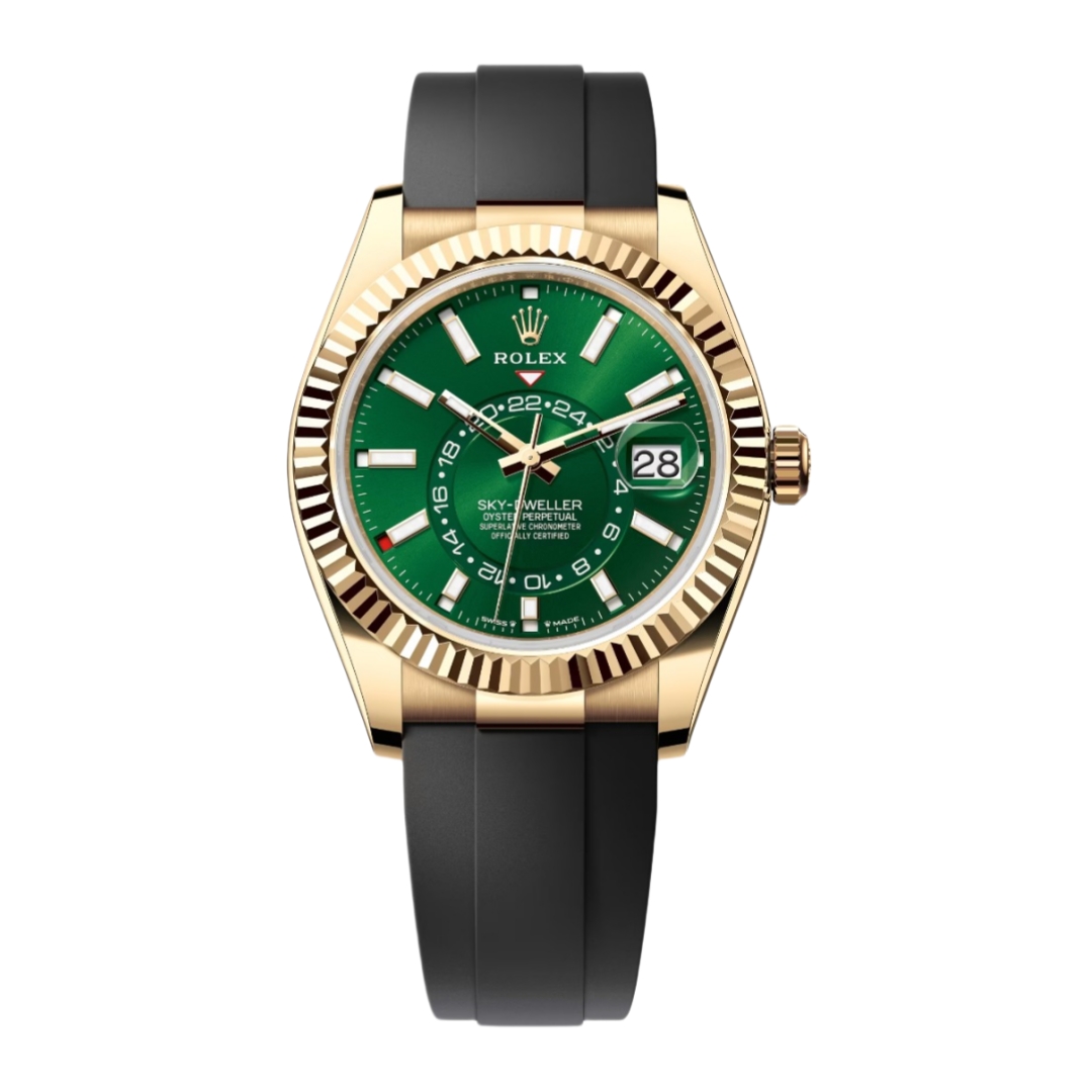Rolex Sky-Dweller 42mm Green Dial Yellow Gold Bezel Black Rubber Strap 336238-0004 2025 New Products