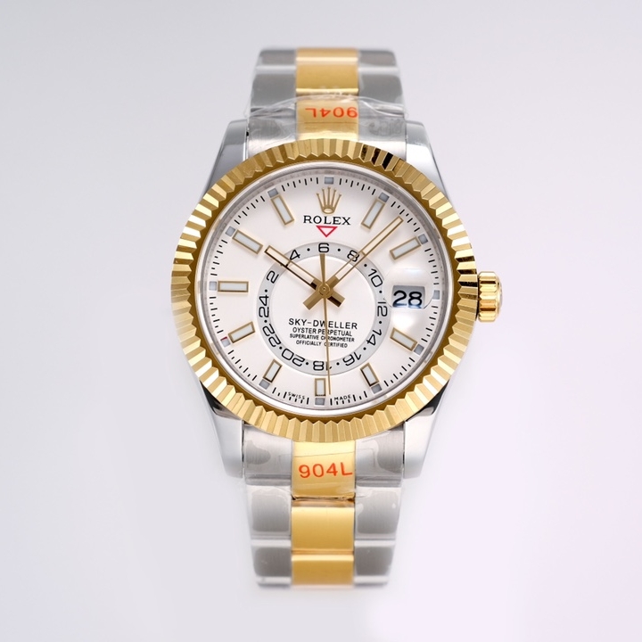 Rolex Sky-Dweller 42mm White Dial Yellow Bezel Gold & Steel 336933-0005
