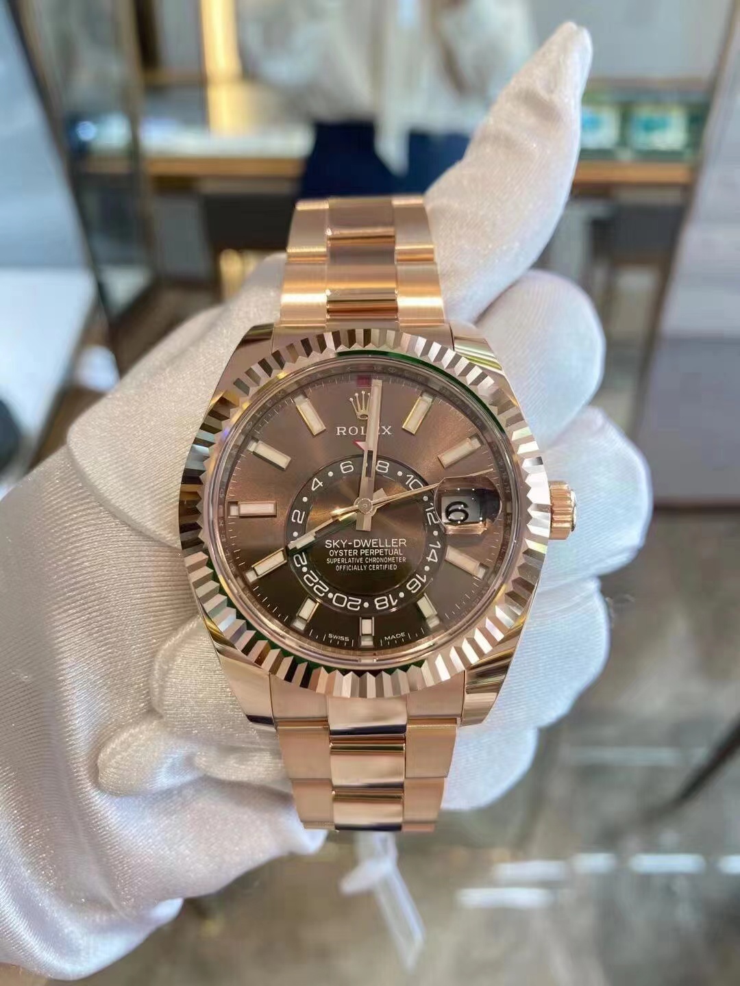 Rose Gold Sky-Dweller 42mm Chocolate Dial Rose Gold Bezel 326935-0003