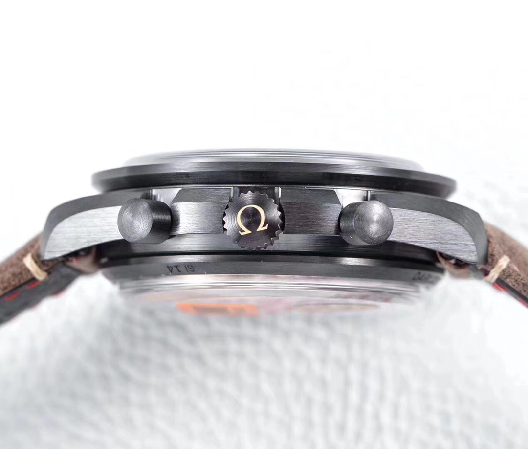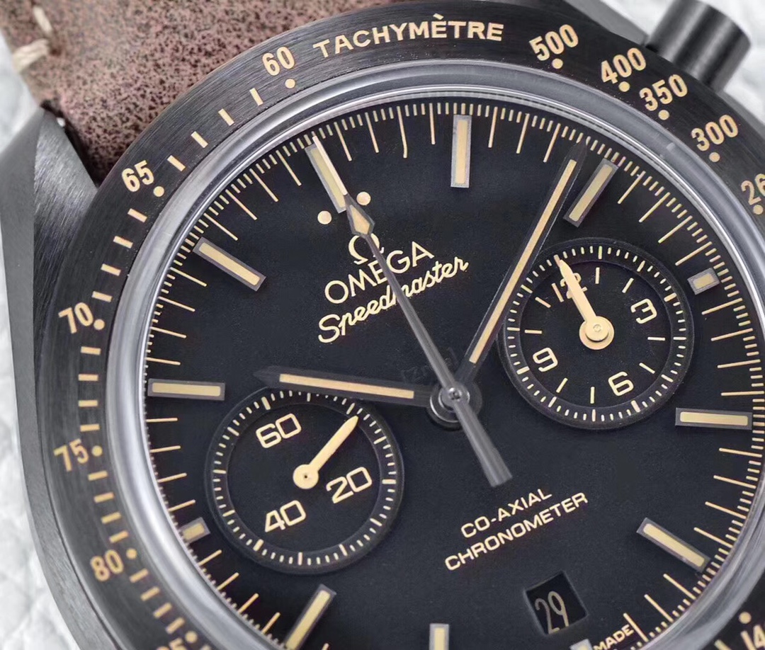Omega Dark Side of the Moon Speedmaster 44.25mm Black Dial Black Yellow Bezel Brown Leather Strap 311.92.44.51.01.006
