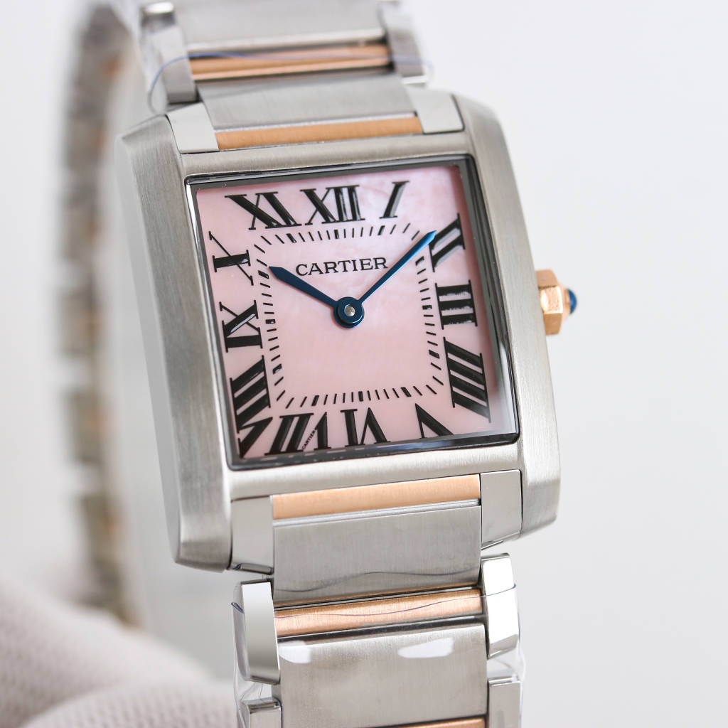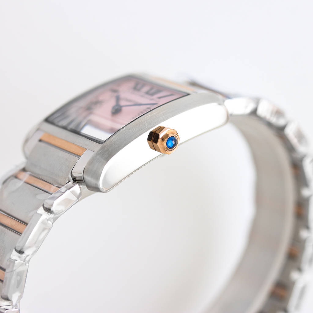 Cartier Tank 30mm x 25mm Pink Fritillaria Dial Steel Bezel Rose Gold Steel Strap W51027Q4 Woman Ladies