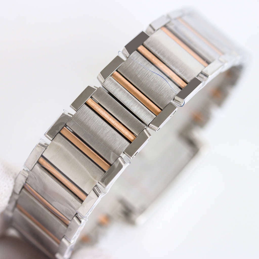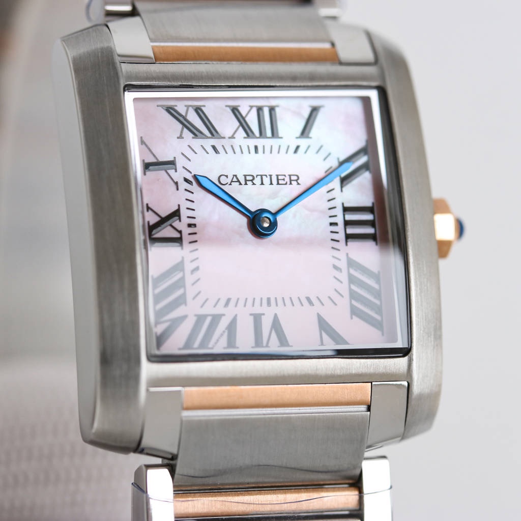 | Cartier Tank 30mm x 25mm Pink Fritillaria Dial Steel Bezel Rose Gold Steel Strap W51027Q4 Woman Ladies | |